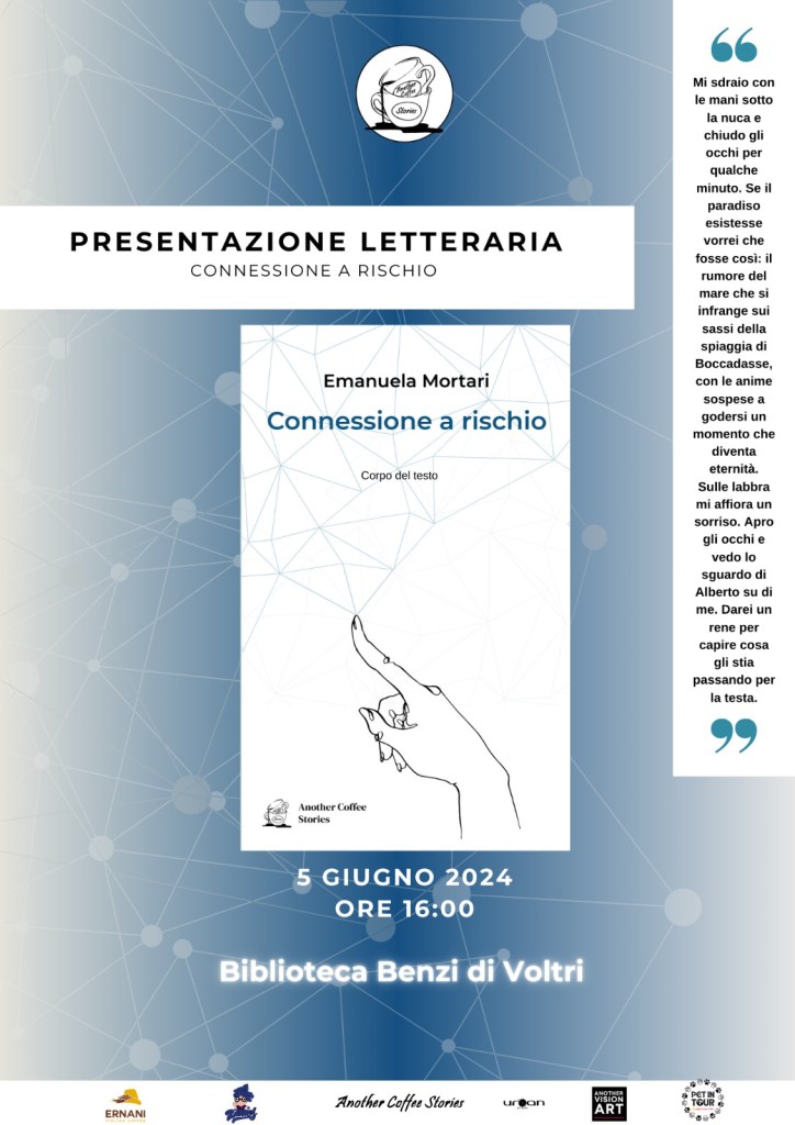 Avrò il piacere di presentare Connessione a Rischio alla Biblioteca Benzi di Voltri. L’appuntamento è per le 16 di mercoledì 5 giugno. Credo che sia una delle ultime uscite pubbliche di Connessione a meno che non arrivino inviti da realtà interessanti.